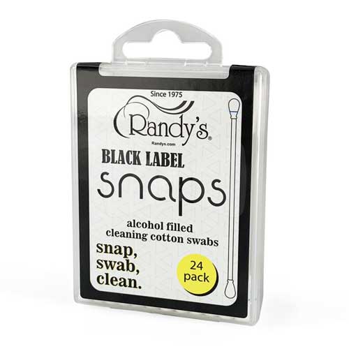 Les Randy’s Snaps sont des cotons-tiges parfaits pour nettoyer les endroits difficiles d’accès. Chaque Snap est rempli d’alcool et contient 2 cotons-tiges qui peuvent être utilisés pour frotter. Un rapide « claquement » du coton-tige avec la ligne bleue et l’alcool est libéré de la tige vers le bas dans le coton-tige. Essuyez simplement n’importe quelle surface pour nettoyer. Chaque pack contient 24 Snaps.