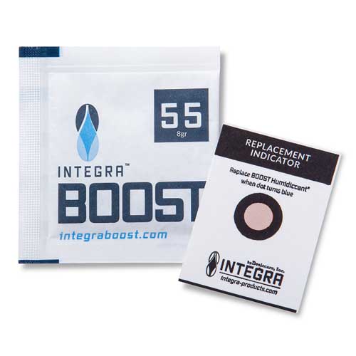 The Integra BOOST 55% RH 2-Way Humidity Regulator 8g is equipped with a patent-pending technology to release or absorb moisture, maintaining relative humidity at 55% in a contained environment. The control pack is safe to work on almost all products. With this 8g pack, you can preserve up to 28g of herbs and keep the original flavour.