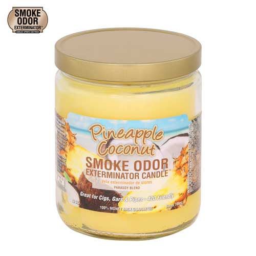 The Smoke Odor Exterminator Candles with a scent of pineapple coconut present a tropical fragrance deliciously blended between juicy pineapple and creamy coconut.